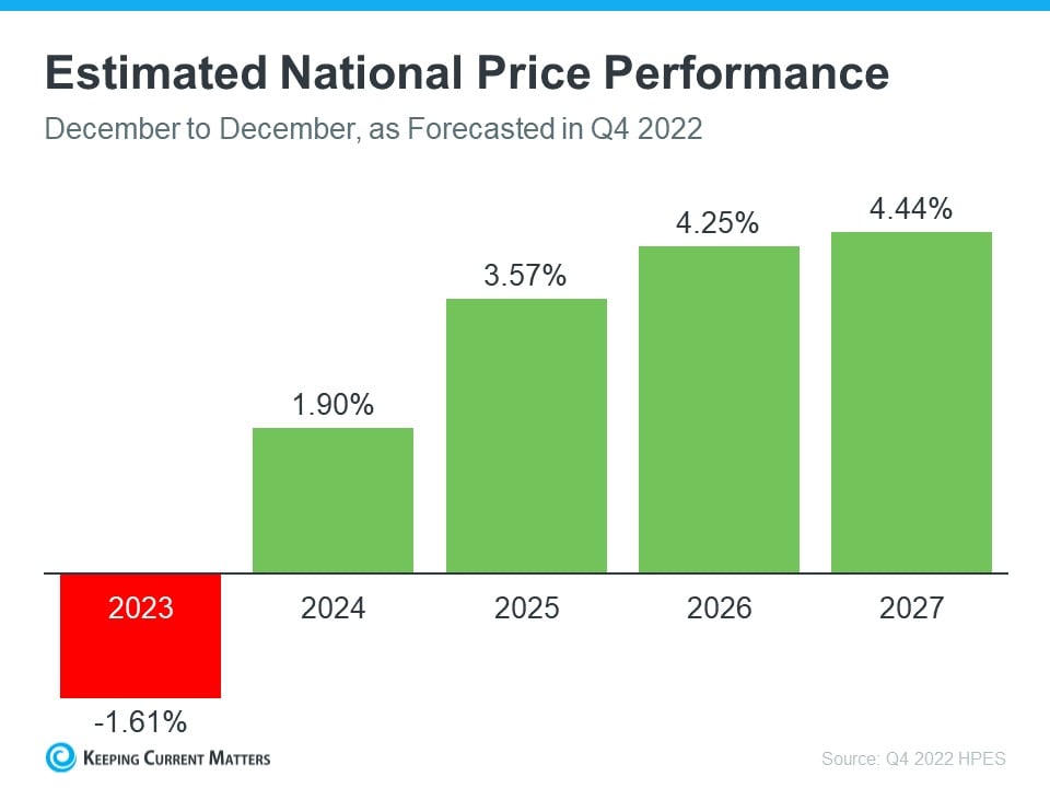 This year, we aren’t seeing home prices fall dramatically. As the year goes on, however, some markets may go up in value while others may lose value. That’s why it’s helpful to keep the long-term view in mind. Experts project a return to a steadier rate of price appreciation in the years that follow.
